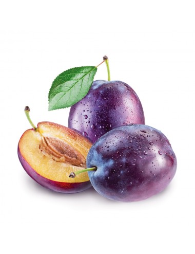 FRUTO: Ciruela negra de carne amarilla, de tamaño pequeño-mediano, con un sabor muy característico, similar a la Claudia verde, pero con tonos más afrutados.