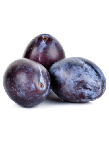 FRUTO: Ciruela negra de carne amarilla, de tamaño pequeño-mediano, con un sabor muy característico, similar a la Claudia verde, pero con tonos más afrutados.