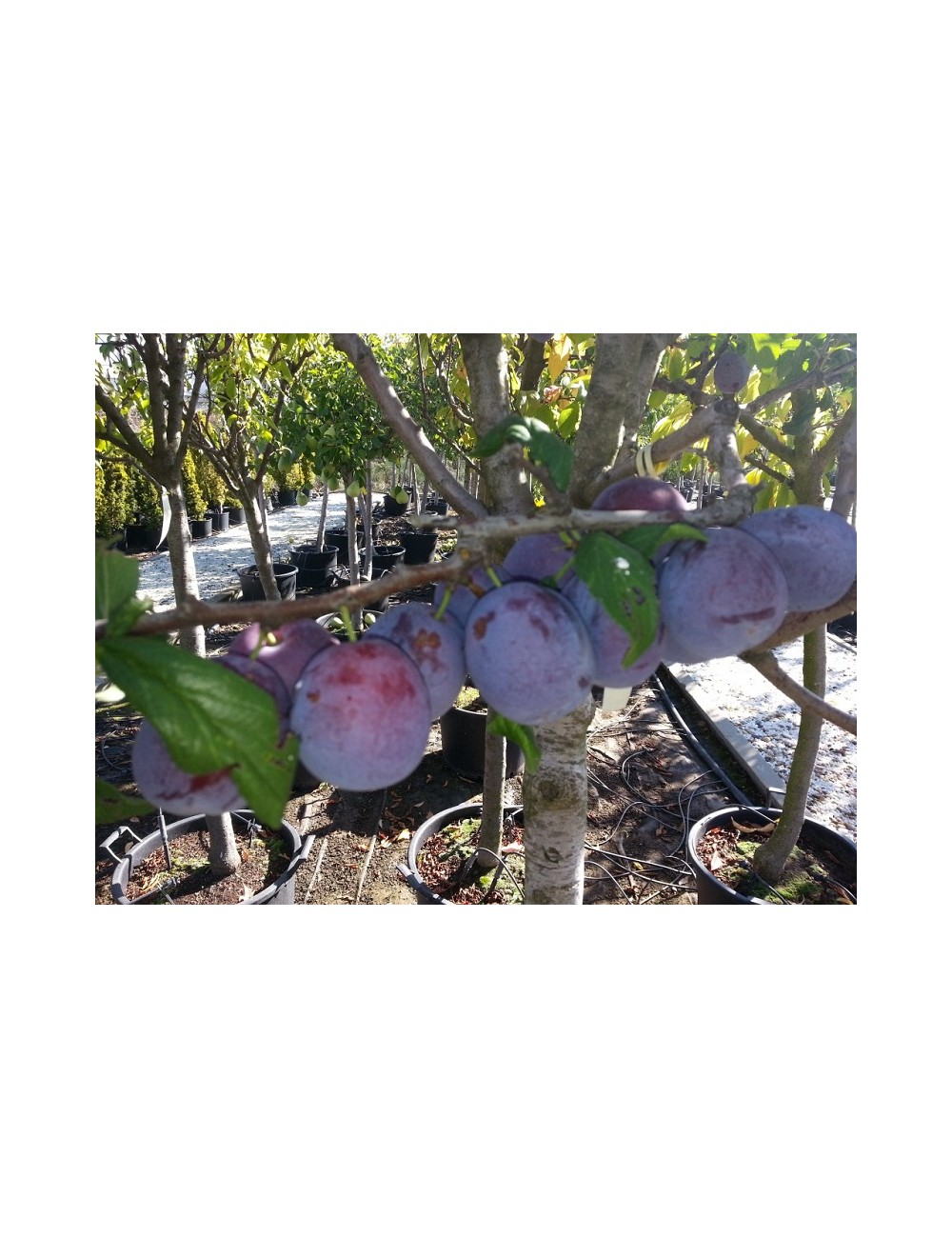 FRUTO: Ciruela verde redonda de tamaño pequeño. Similar a a la ciruela Claudia verde, es auto-fértil y da cosecha de fruta abundante y con más facilidad que la verde, maduración más tardía, unas semanas después de la Claudia verde