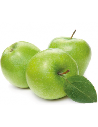 FRUTO: Manzana verde, muy crujiente de sabor intenso y muy ácida, bien madura es más dulce y aguanta bien el guardado. Buena manzana para cocinar y usar en postres y ensaladas, ya que se oxida menos que las demás manzanas.