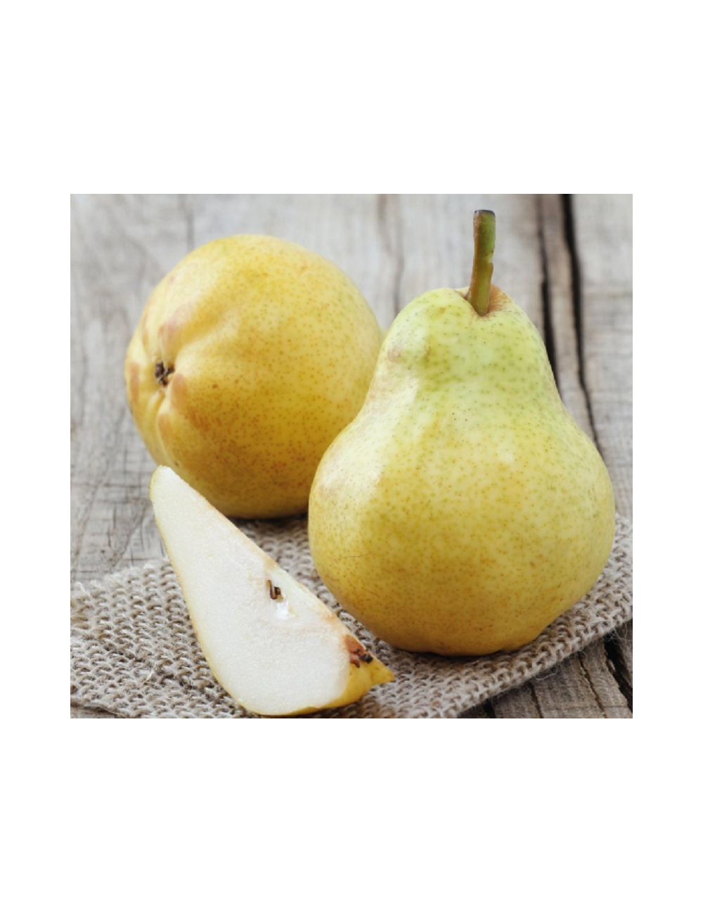 FRUTO: Pera de tamaño grande e irregular. De color amarillo cuando está madura. Se suele recoger en verde y dejar madurar unos días en un lugar oscuro y seco para que alcance su mejor sabor y textura. Bien madura tiene una carne muy fina y jugosa, de buen sabor dulce y gran fragancia, se considera una pera de extraordinaria calidad organoléptica.