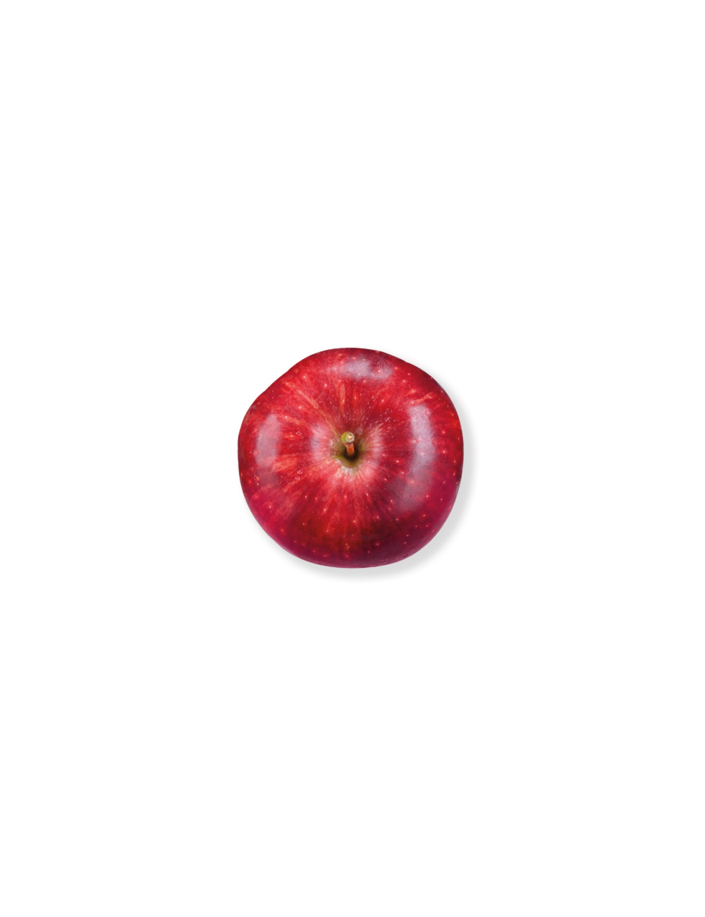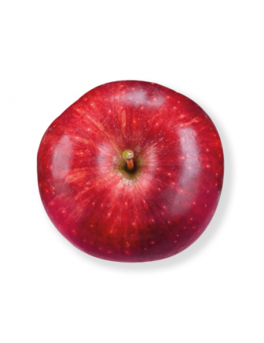 FRUTO: Manzana roja achatada, de piel dura y carne arenosa, no aguanta el guardado, sabor compensado de dulzor y acidez