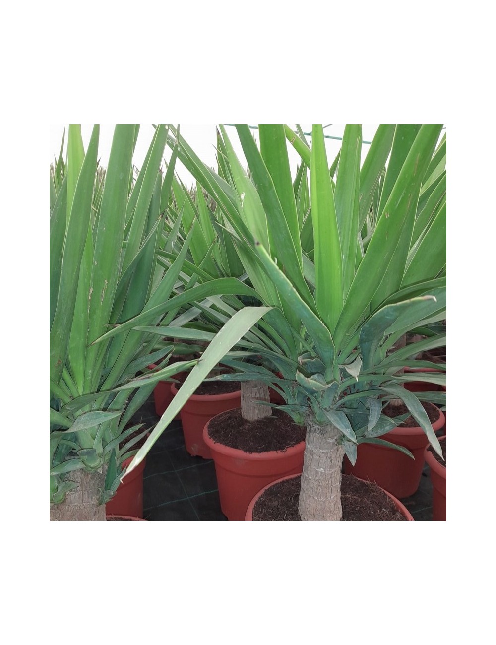 Es un arbusto perenne con un tallo leñoso y grueso, hojas rígidas, alargadas y en forma de espada de un color verde