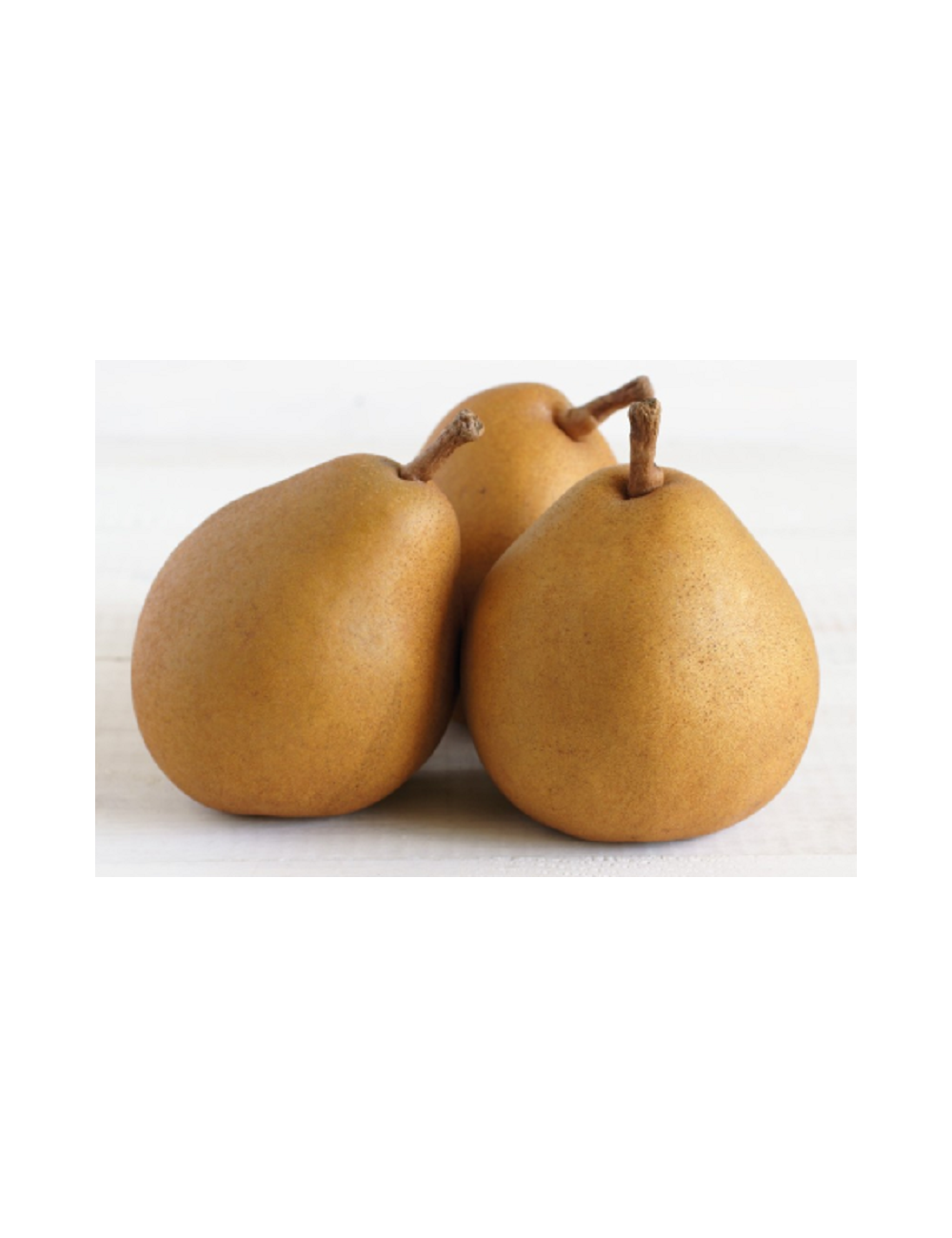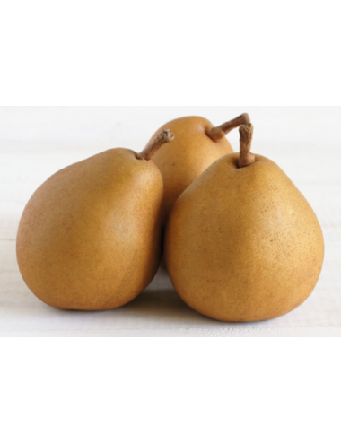 FRUTO: Pera de origen gallego de tamaño pequeño y color verde-pardo con ligera chapa roja. De carne blanca, semi-pastosa, con poca agua, harinosa, de sabor dulce y perfumado aunque ligeramente astringente