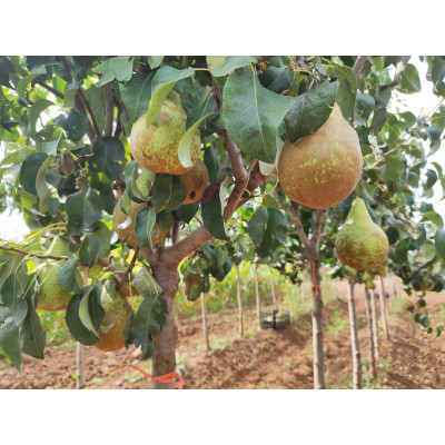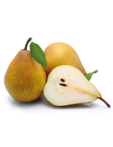 FRUTO: Pera de origen portugués, de tamaño medio, color amarillo-pardo y moteado, de carne jugosa con agua y muy dulce.